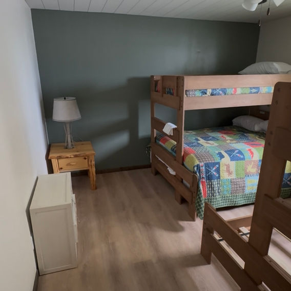 This former house turned cabin is newly renovated spring 2025, with a large living and kitchen space, and 2 bedrooms.